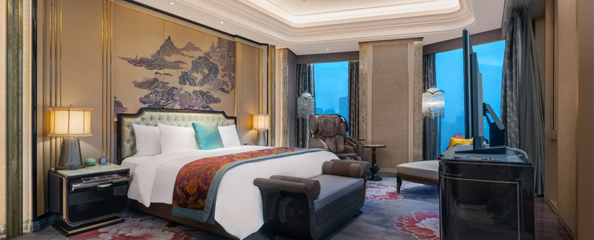 华丽典雅的豪华客房,以艺术装饰风格打造极富东方温情的住宿空间。客房内设有舒适的“万达文华之床”以及万达独创的“妙梦”助眠系列,为宾客打造云端一般的优质睡眠体验。豪华的浴室设有独立的浴缸与热带雨林式淋浴设施,并提供豪华沐浴及护理产品,让宾客尽享舒心沐浴体验。客房配备宽屏液晶电视,海量国际卫星频道和无线网络等现代化设施,为宾客打造恣意优雅的住宿体验。