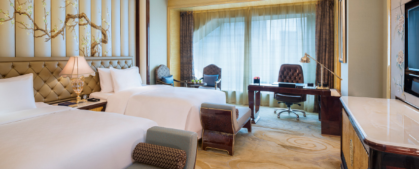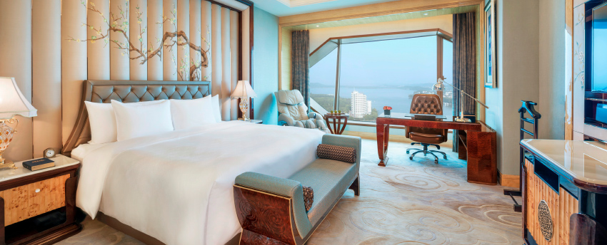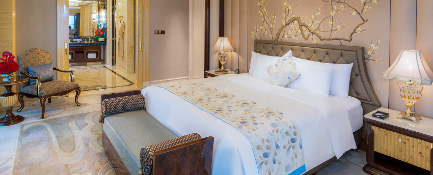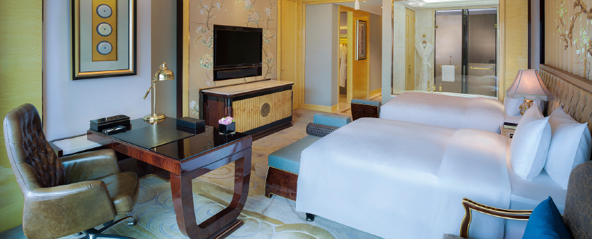 华丽典雅的豪华客房,以艺术装饰风格打造极富东方温情的住宿空间。客房内设有舒适的“万达文华之床”以及万达独创的“妙梦”助眠系列,为宾客打造云端一般的优质睡眠体验。豪华的浴室设有独立的浴缸与热带雨林式淋浴设施,并提供豪华沐浴及护理产品,让宾客尽享舒心沐浴体验。客房配备宽屏液晶电视,海量国际卫星频道和无线网络等现代化设施,为宾客打造恣意优雅的住宿体验。