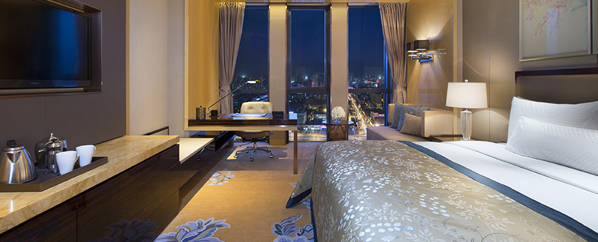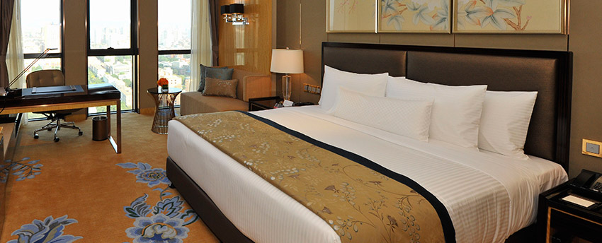 华丽典雅的豪华客房,以艺术装饰风格打造极富东方温情的住宿空间。客房内设有舒适的“万达文华之床”以及万达独创的“妙梦”助眠系列,为宾客打造云端一般的优质睡眠体验。豪华的浴室设有独立的浴缸与热带雨林式淋浴设施,并提供豪华沐浴及护理产品,让宾客尽享舒心沐浴体验。客房配备宽屏液晶电视,海量国际卫星频道和无线网络等现代化设施,为宾客打造恣意优雅的住宿体验。