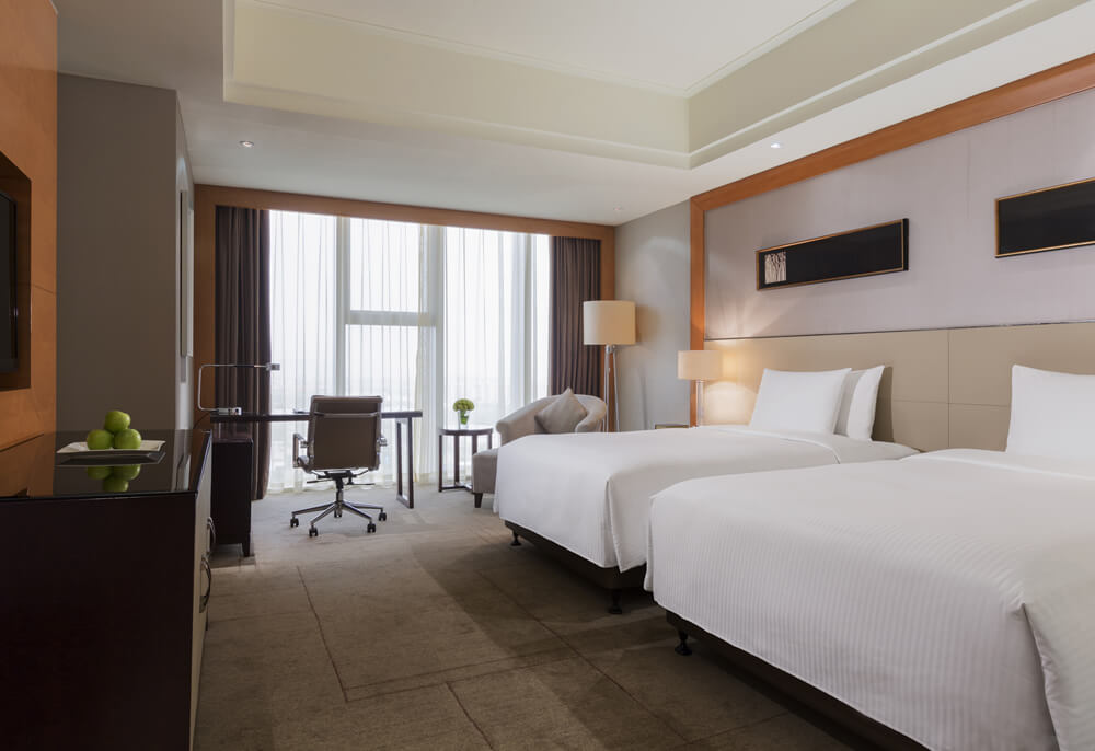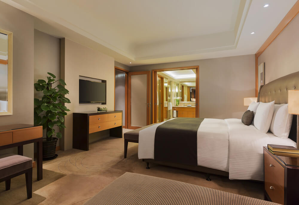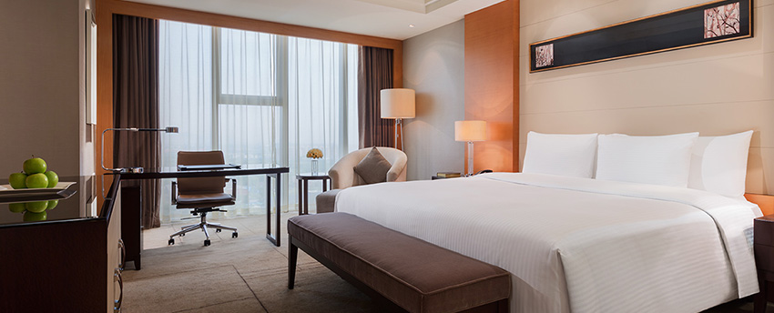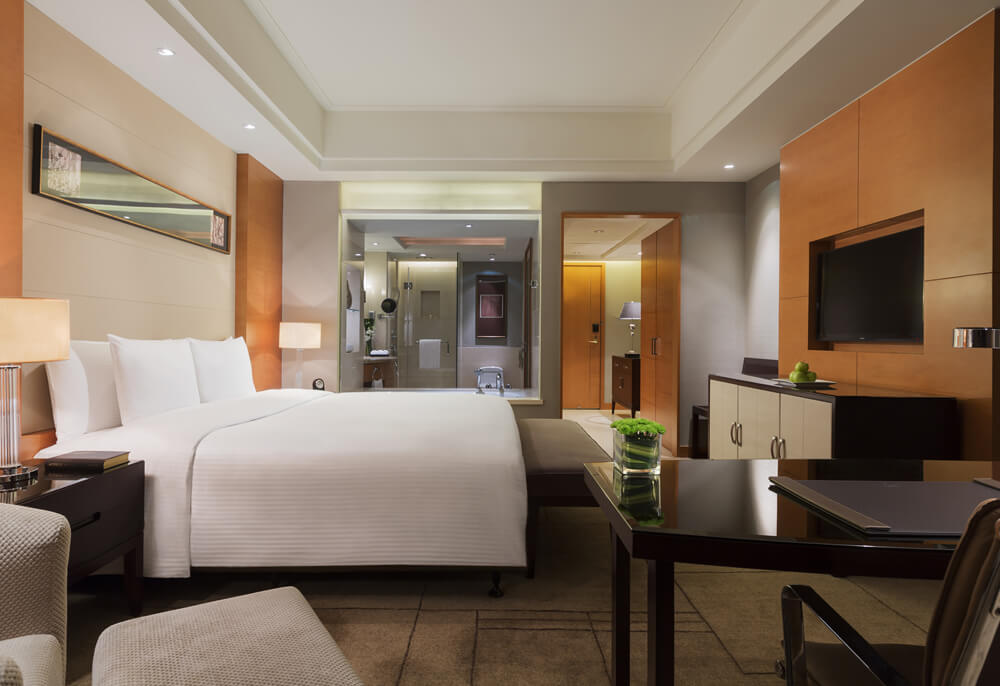 华丽典雅的豪华客房,以艺术装饰风格打造极富东方温情的住宿空间。客房内设有舒适的“万达文华之床”以及万达独创的“妙梦”助眠系列,为宾客打造云端一般的优质睡眠体验。豪华的浴室设有独立的浴缸与热带雨林式淋浴设施,并提供豪华沐浴及护理产品,让宾客尽享舒心沐浴体验。客房配备宽屏液晶电视,海量国际卫星频道和无线网络等现代化设施,为宾客打造恣意优雅的住宿体验。