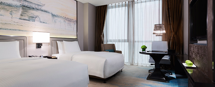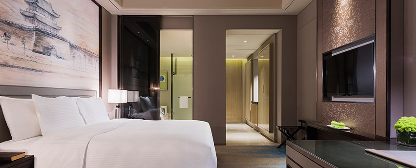 华丽典雅的豪华客房,以艺术装饰风格打造极富东方温情的住宿空间。客房内设有舒适的“万达文华之床”以及万达独创的“妙梦”助眠系列,为宾客打造云端一般的优质睡眠体验。豪华的浴室设有独立的浴缸与热带雨林式淋浴设施,并提供豪华沐浴及护理产品,让宾客尽享舒心沐浴体验。客房配备宽屏液晶电视,海量国际卫星频道和无线网络等现代化设施,为宾客打造恣意优雅的住宿体验。