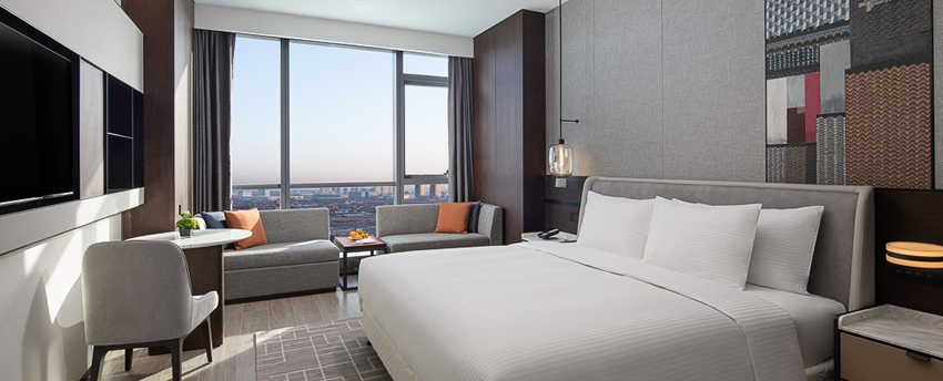 华丽典雅的豪华客房,以艺术装饰风格打造极富东方温情的住宿空间。客房内设有舒适的“万达文华之床”以及万达独创的“妙梦”助眠系列,为宾客打造云端一般的优质睡眠体验。豪华的浴室设有独立的浴缸与热带雨林式淋浴设施,并提供豪华沐浴及护理产品,让宾客尽享舒心沐浴体验。客房配备宽屏液晶电视,海量国际卫星频道和无线网络等现代化设施,为宾客打造恣意优雅的住宿体验。