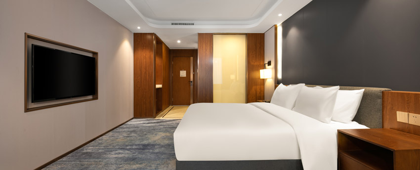 华丽典雅的豪华客房,以艺术装饰风格打造极富东方温情的住宿空间。客房内设有舒适的“万达文华之床”以及万达独创的“妙梦”助眠系列,为宾客打造云端一般的优质睡眠体验。豪华的浴室设有独立的浴缸与热带雨林式淋浴设施,并提供豪华沐浴及护理产品,让宾客尽享舒心沐浴体验。客房配备宽屏液晶电视,海量国际卫星频道和无线网络等现代化设施,为宾客打造恣意优雅的住宿体验。
