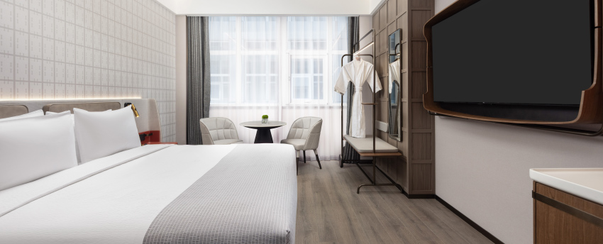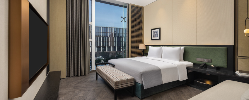 华丽典雅的豪华客房,以艺术装饰风格打造极富东方温情的住宿空间。客房内设有舒适的“万达文华之床”以及万达独创的“妙梦”助眠系列,为宾客打造云端一般的优质睡眠体验。豪华的浴室设有独立的浴缸与热带雨林式淋浴设施,并提供豪华沐浴及护理产品,让宾客尽享舒心沐浴体验。客房配备宽屏液晶电视,海量国际卫星频道和无线网络等现代化设施,为宾客打造恣意优雅的住宿体验。