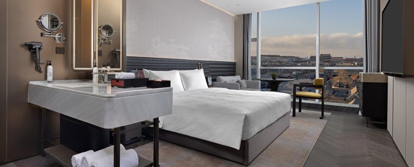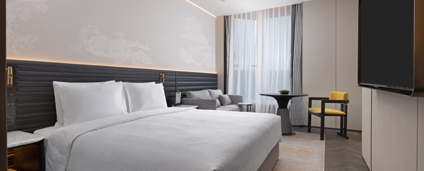 华丽典雅的豪华客房,以艺术装饰风格打造极富东方温情的住宿空间。客房内设有舒适的“万达文华之床”以及万达独创的“妙梦”助眠系列,为宾客打造云端一般的优质睡眠体验。豪华的浴室设有独立的浴缸与热带雨林式淋浴设施,并提供豪华沐浴及护理产品,让宾客尽享舒心沐浴体验。客房配备宽屏液晶电视,海量国际卫星频道和无线网络等现代化设施,为宾客打造恣意优雅的住宿体验。