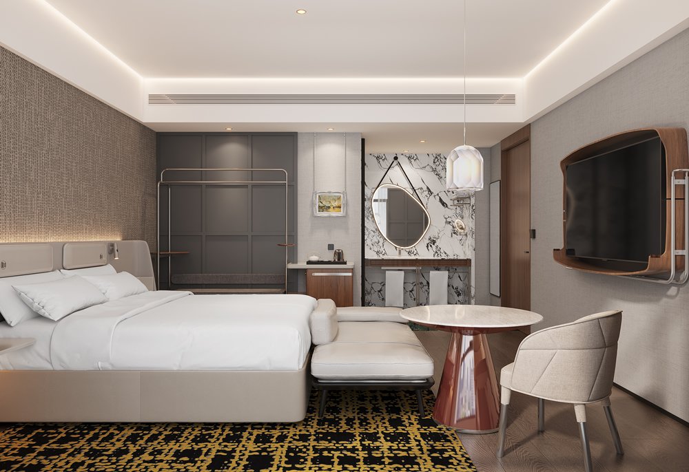 华丽典雅的豪华客房,以艺术装饰风格打造极富东方温情的住宿空间。客房内设有舒适的“万达文华之床”以及万达独创的“妙梦”助眠系列,为宾客打造云端一般的优质睡眠体验。豪华的浴室设有独立的浴缸与热带雨林式淋浴设施,并提供豪华沐浴及护理产品,让宾客尽享舒心沐浴体验。客房配备宽屏液晶电视,海量国际卫星频道和无线网络等现代化设施,为宾客打造恣意优雅的住宿体验。