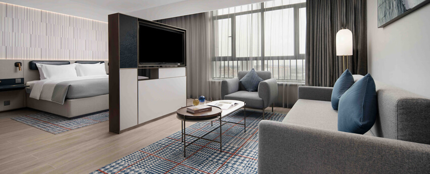 华丽典雅的豪华客房,以艺术装饰风格打造极富东方温情的住宿空间。客房内设有舒适的“万达文华之床”以及万达独创的“妙梦”助眠系列,为宾客打造云端一般的优质睡眠体验。豪华的浴室设有独立的浴缸与热带雨林式淋浴设施,并提供豪华沐浴及护理产品,让宾客尽享舒心沐浴体验。客房配备宽屏液晶电视,海量国际卫星频道和无线网络等现代化设施,为宾客打造恣意优雅的住宿体验。