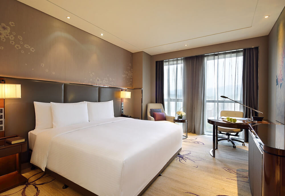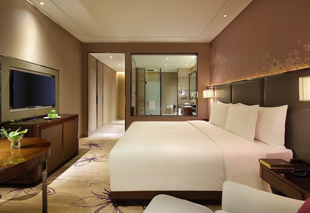 华丽典雅的豪华客房,以艺术装饰风格打造极富东方温情的住宿空间。客房内设有舒适的“万达文华之床”以及万达独创的“妙梦”助眠系列,为宾客打造云端一般的优质睡眠体验。豪华的浴室设有独立的浴缸与热带雨林式淋浴设施,并提供豪华沐浴及护理产品,让宾客尽享舒心沐浴体验。客房配备宽屏液晶电视,海量国际卫星频道和无线网络等现代化设施,为宾客打造恣意优雅的住宿体验。