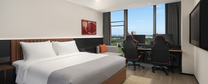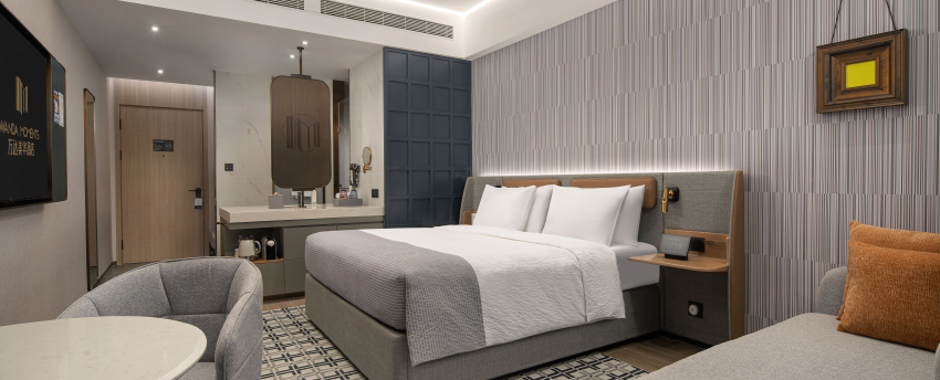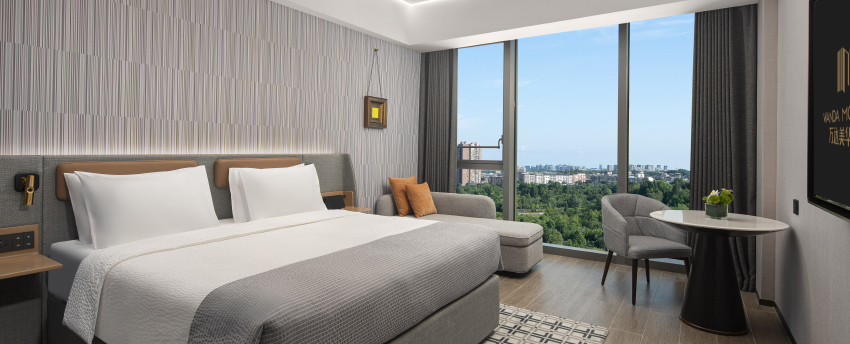 华丽典雅的豪华客房,以艺术装饰风格打造极富东方温情的住宿空间。客房内设有舒适的“万达文华之床”以及万达独创的“妙梦”助眠系列,为宾客打造云端一般的优质睡眠体验。豪华的浴室设有独立的浴缸与热带雨林式淋浴设施,并提供豪华沐浴及护理产品,让宾客尽享舒心沐浴体验。客房配备宽屏液晶电视,海量国际卫星频道和无线网络等现代化设施,为宾客打造恣意优雅的住宿体验。