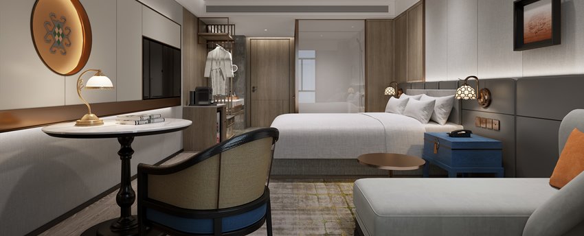 华丽典雅的豪华客房,以艺术装饰风格打造极富东方温情的住宿空间。客房内设有舒适的“万达文华之床”以及万达独创的“妙梦”助眠系列,为宾客打造云端一般的优质睡眠体验。豪华的浴室设有独立的浴缸与热带雨林式淋浴设施,并提供豪华沐浴及护理产品,让宾客尽享舒心沐浴体验。客房配备宽屏液晶电视,海量国际卫星频道和无线网络等现代化设施,为宾客打造恣意优雅的住宿体验。
