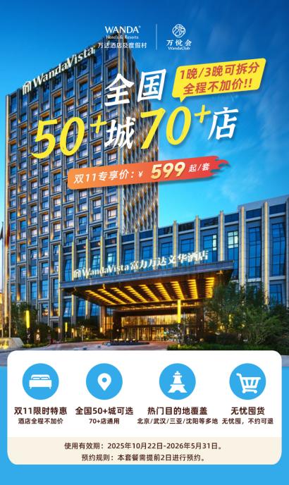 此次大促的出色成绩,源于万达酒店及度假村长期对市场趋势的持续洞察、对产品体验的不断打磨,以及对用户服务的深度投入。未来,万达酒店及度假村将继续深化“酒店+”生态布局,持续为用户提供更丰富的产品形态、更温暖的服务体验,持续推动中国酒店行业的高质量发展。