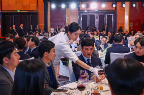 欢迎晚宴于酒店宴会厅举行,现场布置典雅庄重,巧妙融汇中韩文化元素,营造出友好而尊贵的氛围。菜单设计尤为用心,厨艺团队在严格遵守国宾级食品安全标准的前提下,将中华美食精髓与韩国饮食文化巧妙结合。前期,团队根据会议组织方及贵宾的偏好,进行了多轮试菜,每个菜系均精心准备两至三款备选方案供客人甄选,最终敲定一套既体现中华技艺、又饱含诚意的定制化菜单。