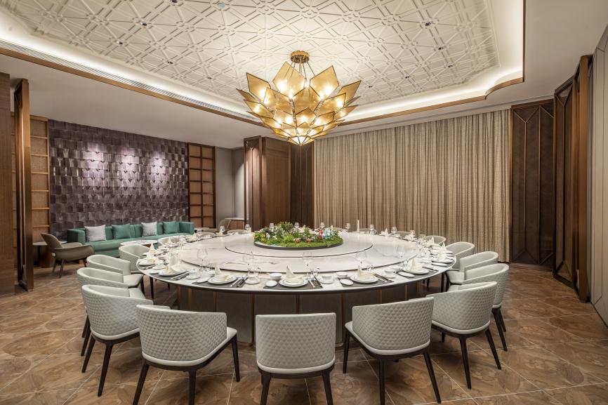 酒店的会议与宴会设施堪称城中标杆,1200平方米无柱式大宴会厅层高达10米,配备120平方米超大LED显示屏,并可灵活分割为三个独立厅室。另有4间不同规模的多功能厅,总面积从60平方米到140平方米不等,可满足10人至1200人的多样化活动需求。无论是大型商务会议、盛大婚宴,还是私人家庭聚会,专业的一站式会议管家团队全程贴心服务,从场地布置到餐饮定制全程跟进,确保每场活动圆满成功。